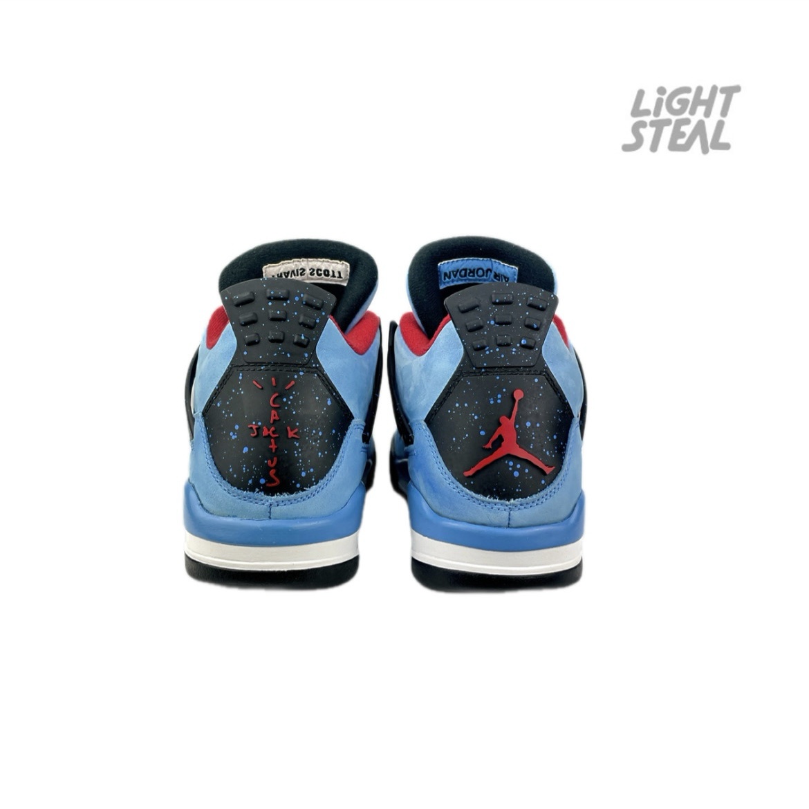La sneaker presenta una tomaia in nubuck University Blue con dettagli neri e rossi, accompagnata da una serie di elementi personalizzati come il logo Cactus Jack sul tallone, che rende questa release unica e riconoscibile.
